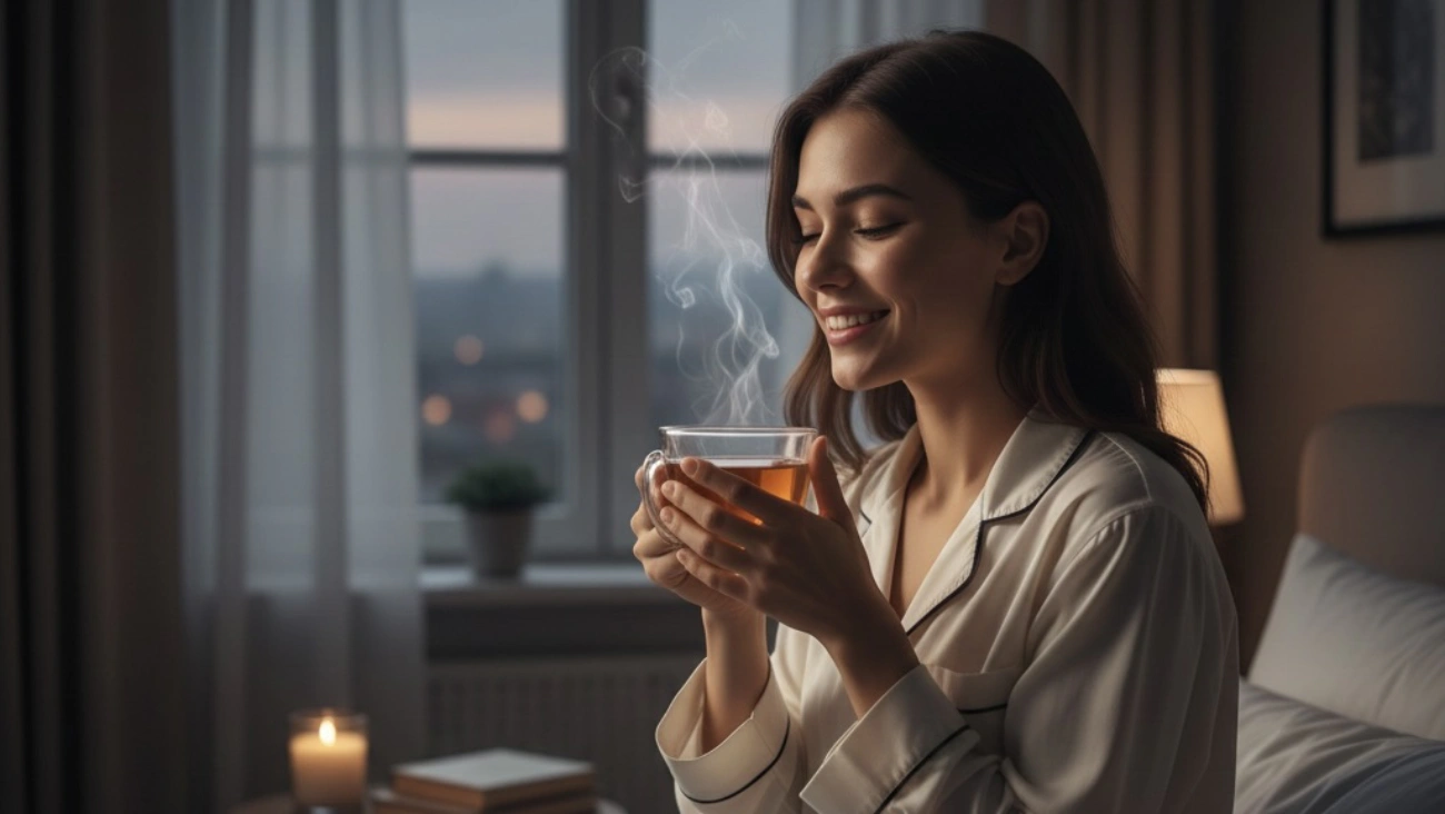 Create a calming evening ritual. A cup of Organic Peaceful Sleep Tea helps you fall asleep naturally and enjoy a restful night.